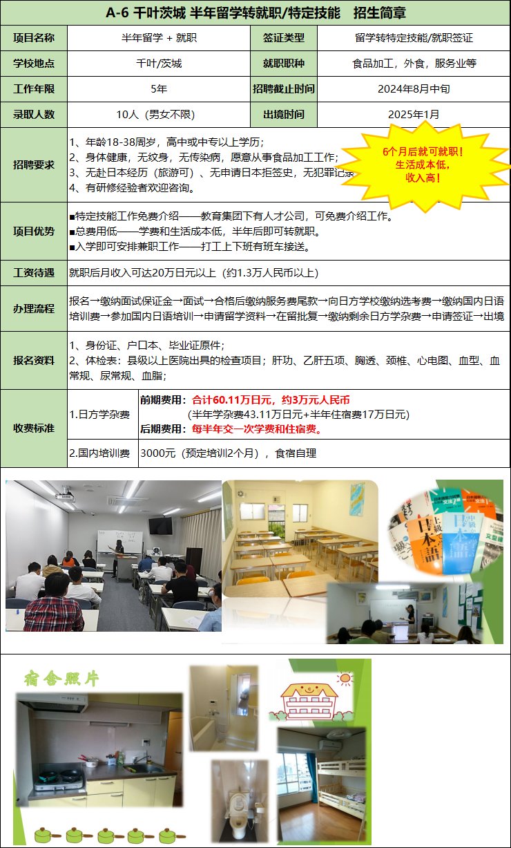 東京半年留學轉特定技能,半年后可就職!就職工種多!100%保證就職!