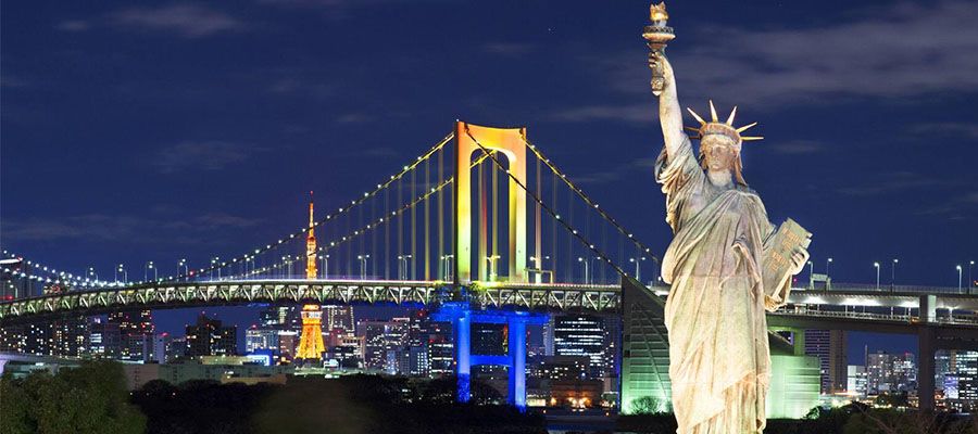 彩虹大橋(レインボーブリッジ;Rainbow Bridge,橫跨于港區(qū)芝浦與臺場間)