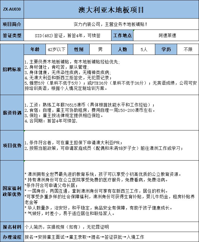 實(shí)力公司,主營家居建材,主要負(fù)責(zé)鋪設(shè)瓷磚、地板,1年以上相關(guān)工作經(jīng)驗(yàn);年薪73150澳幣,多勞多得,工資漲薪潛力極大